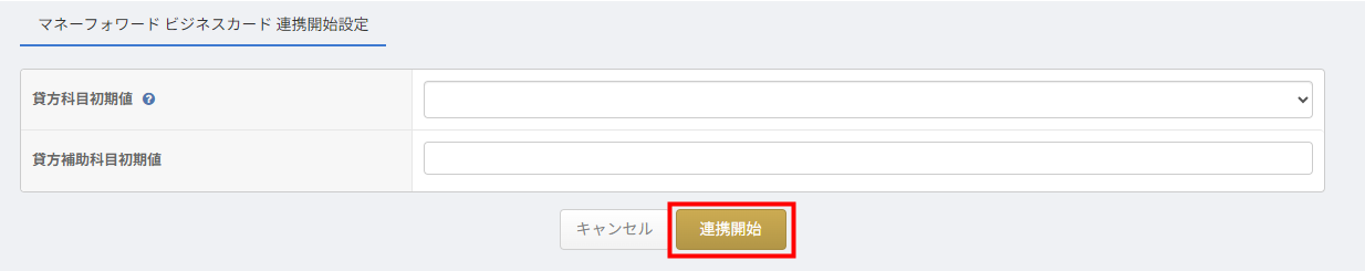 - カードを利用した際の貸方勘定科目および貸方勘定補助科目の初期値を設定し、「連携開始」をクリックします。