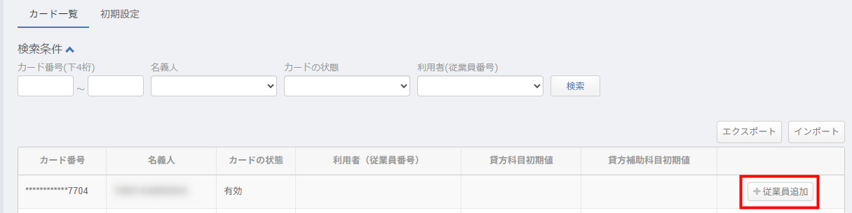 - カードに紐付ける従業員と、貸方勘定科目・貸方勘定補助科目の初期値を設定します。