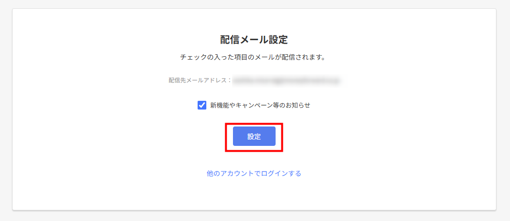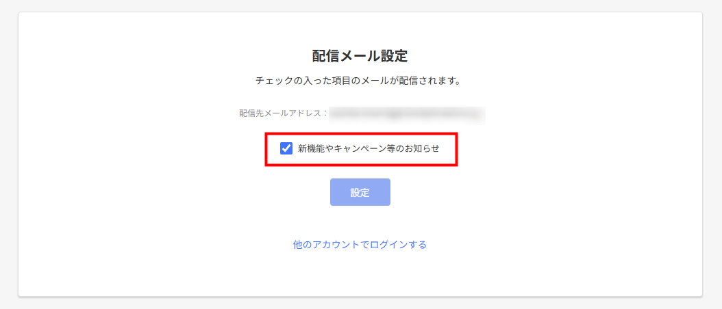 - 「配信メール設定」画面で「新機能やキャンペーン等のお知らせ」にチェックを入れます。