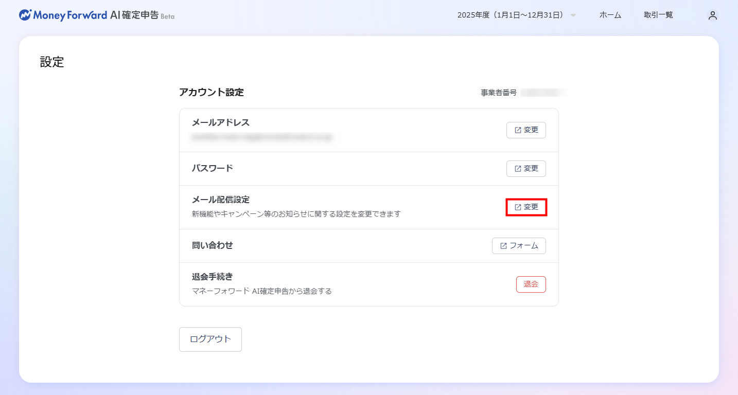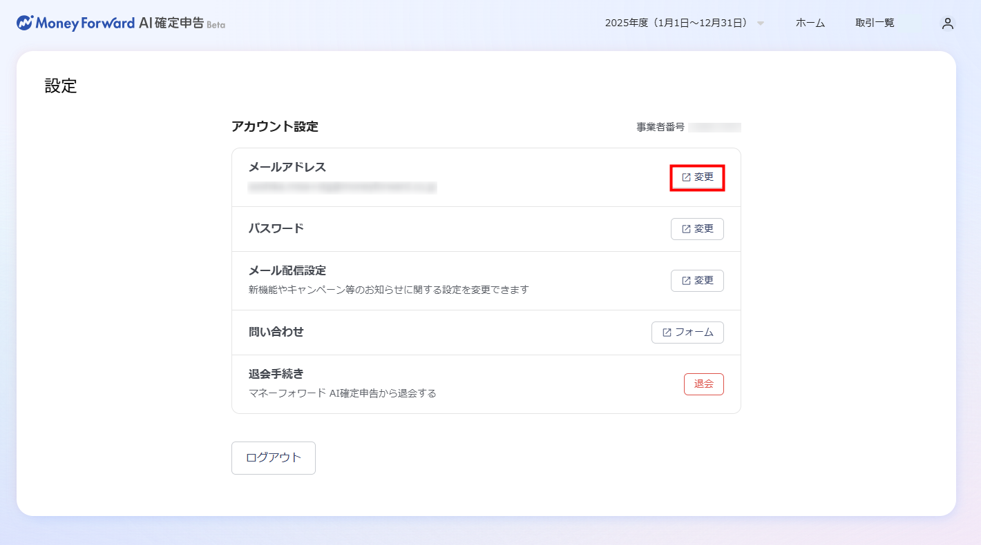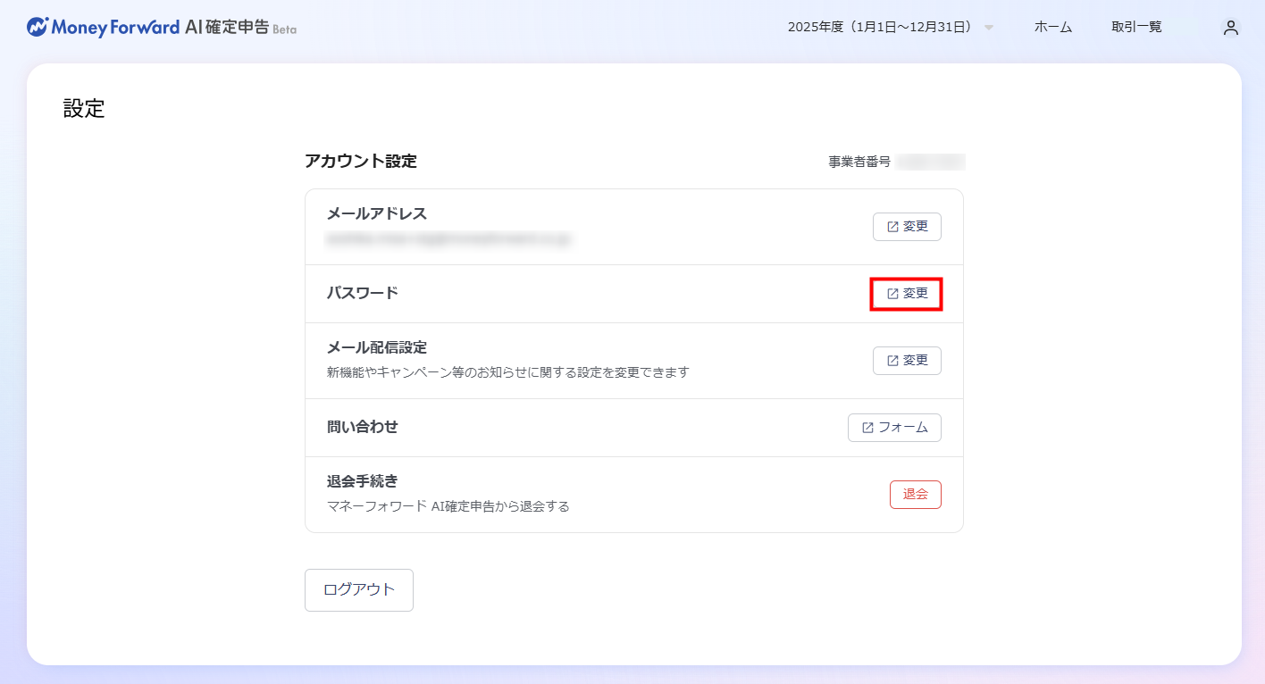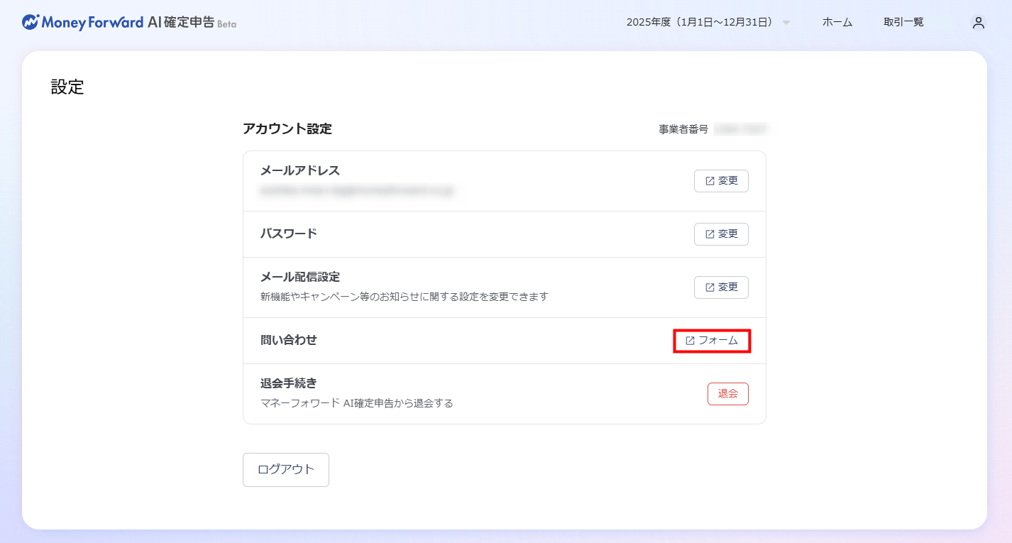 「マネーフォワード AI確定申告」に登録中のアカウントを削除する場合は、以下の手順で退会手続きを行ってください。
