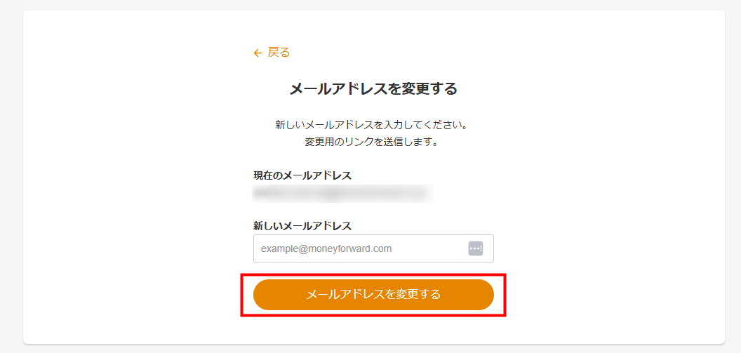 - 「新しいメールアドレス」には、マネーフォワード IDとして登録されていないメールアドレスを入力してください。