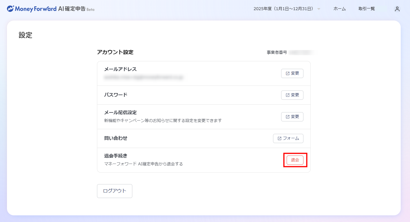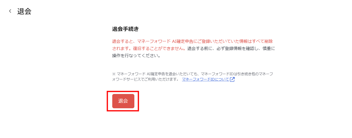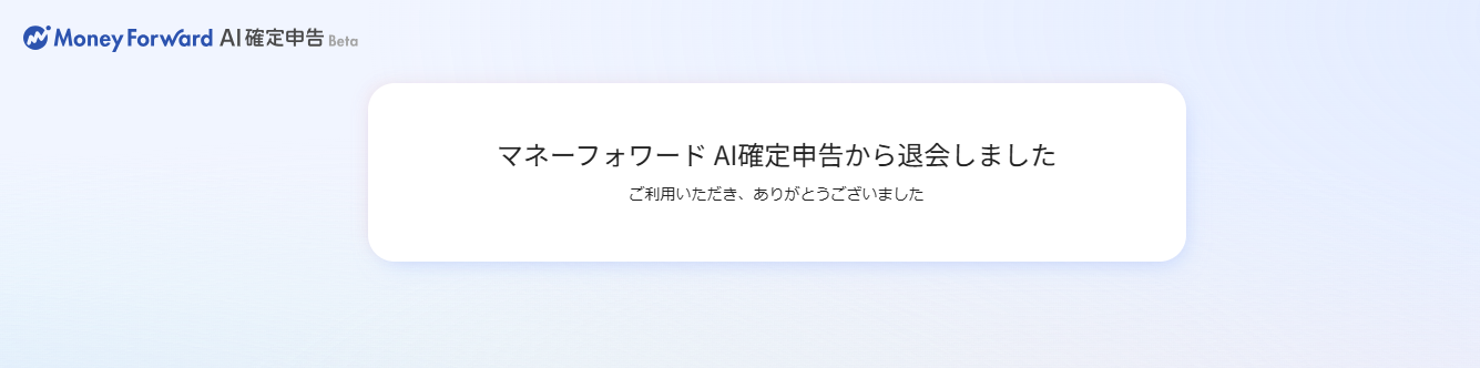 - 「マネーフォワード AI確定申告から退会しました」と表示されたことを確認します。
