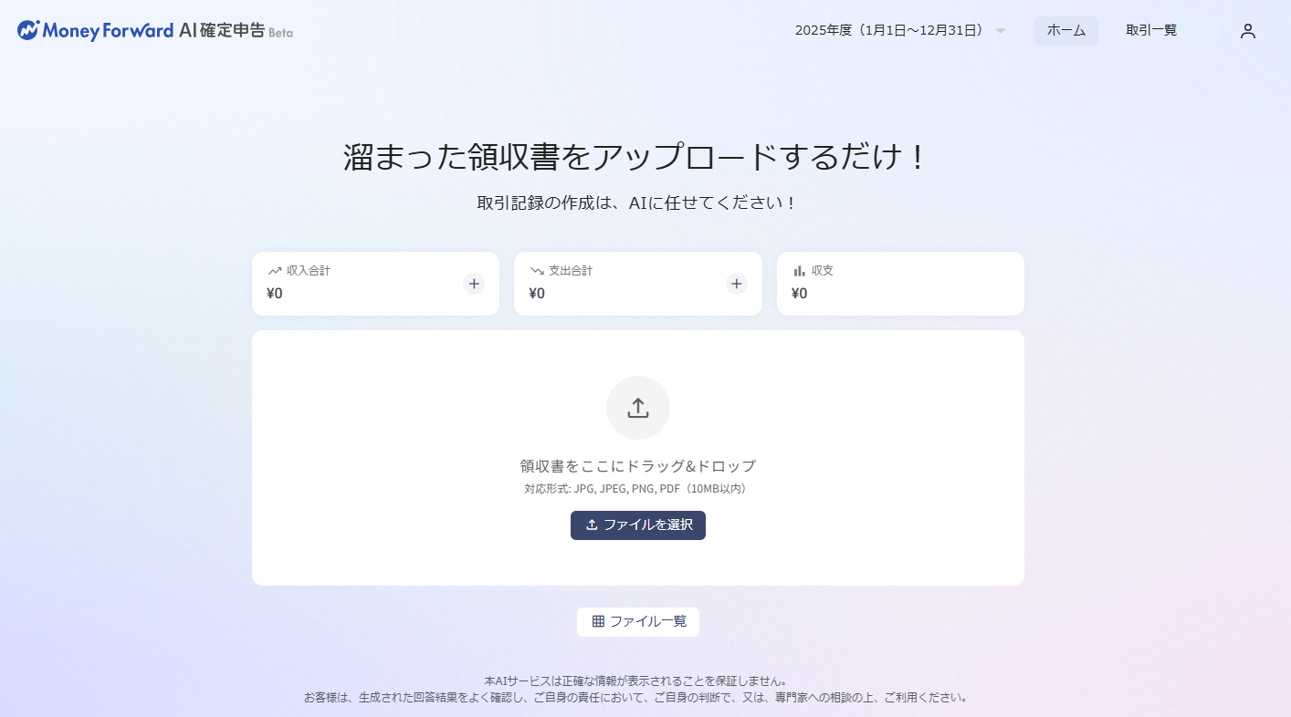 「マネーフォワード AI確定申告」とは、領収書をアップロードするだけでAIが内容を読み取り、取引記録※を自動作成できるサービスです。