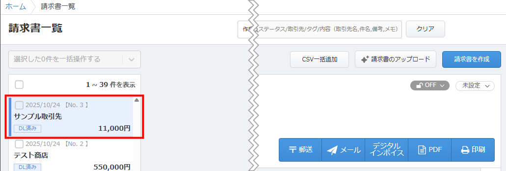 本ガイドでは請求書を例に説明していますが、他の帳票でもステータスの設定は可能です。