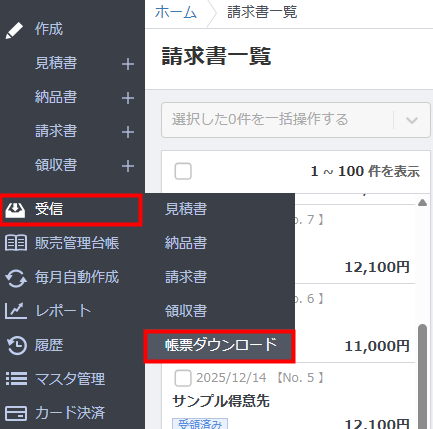 受信>帳票ダウンロード