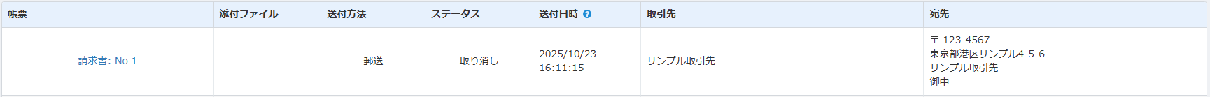 「取り消し」ステータスの帳票は、郵送依頼をキャンセルした状態です。