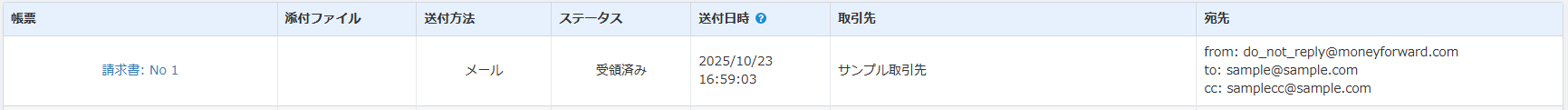 「受領済み」ステータスの帳票は、取引先が帳票を閲覧した状態です。