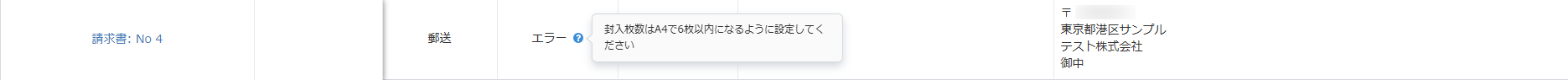 「エラー」ステータスの帳票は、郵送の受付ができなかった状態です。