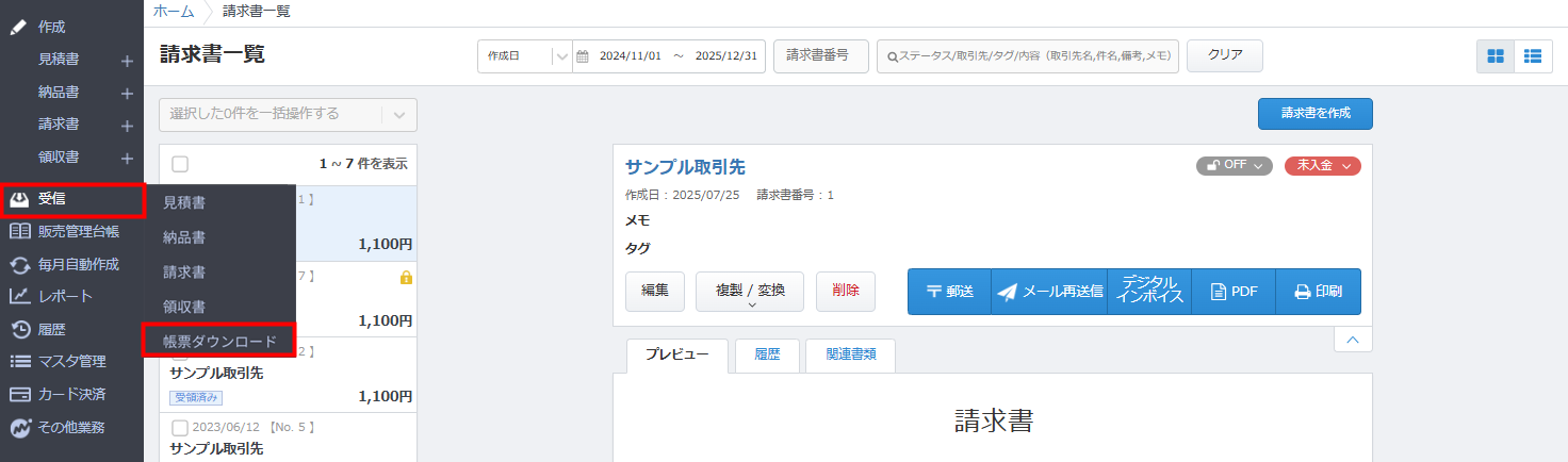 • 「受信」機能と「販売管理台帳」機能の提供終了については、こちらのお知らせをご参照ください。