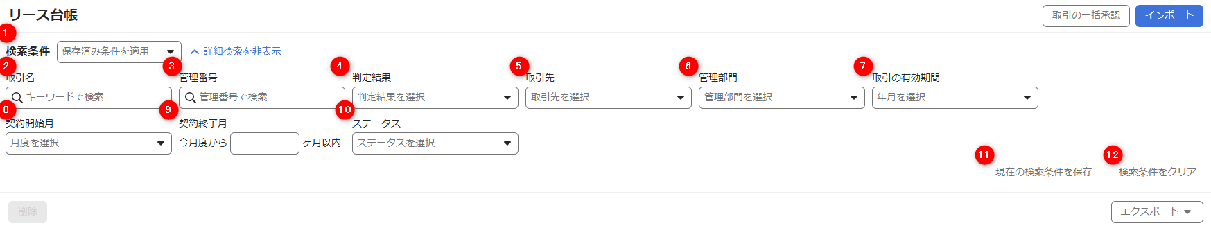 | ⑫ | 検索条件をクリア | クリックすると、指定している検索条件をリセットできます。 |