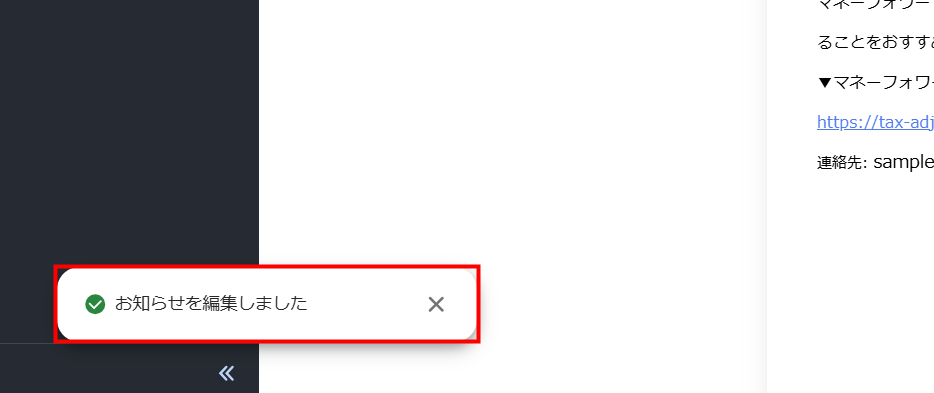 5. 画面左下に「お知らせを編集しました」というメッセージが表示されたことを確認します。