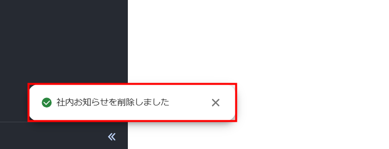 5. 画面左下に「社内お知らせを削除しました」というメッセージが表示されたことを確認します。