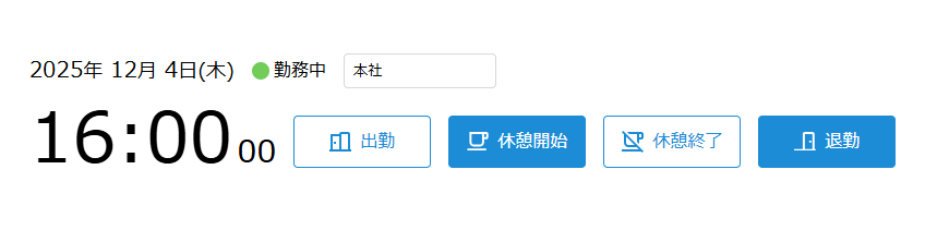 打刻ボタンは、ユーザーの勤務状態に応じて青色で表示されます。