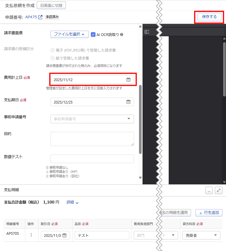 自動仕訳設定が「申請」の場合