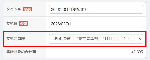 - 集計作成時に「支払元口座」を必ず選択してください。