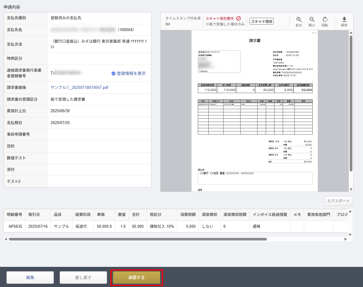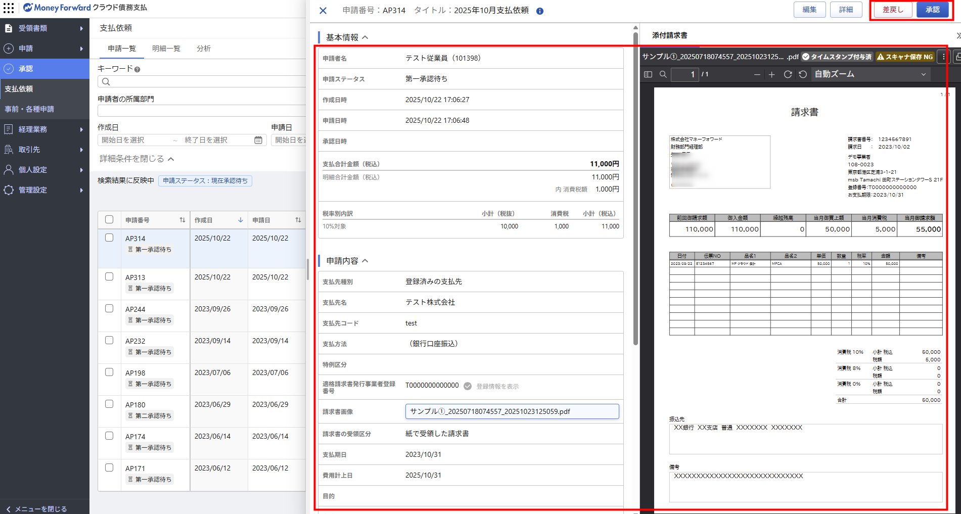 本リニューアル後は、一覧画面上で請求書のプレビューや申請内容を確認しながら、承認や差し戻ができるようになります。