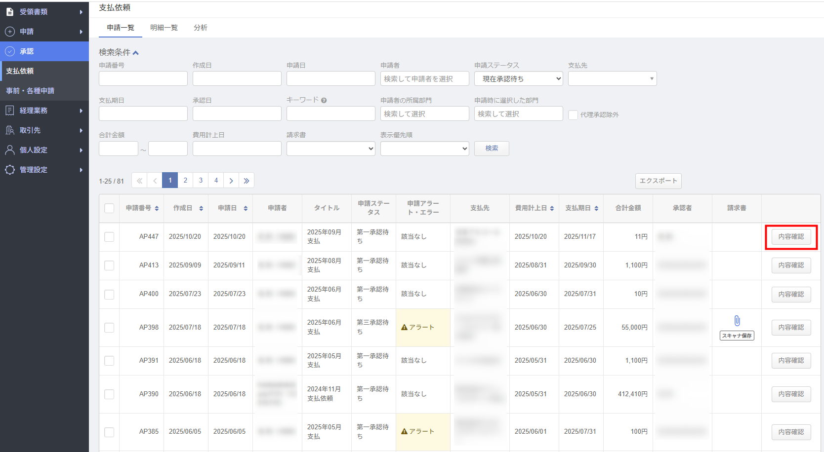 これまで、承認待ちの申請を個別で確認・承認するためには、一度申請の詳細画面を開く必要がありました。