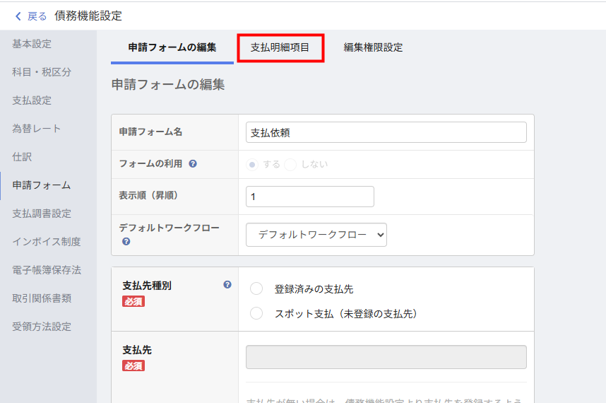 申請フォームの設定画面に「支払明細項目」タブを新設しました。