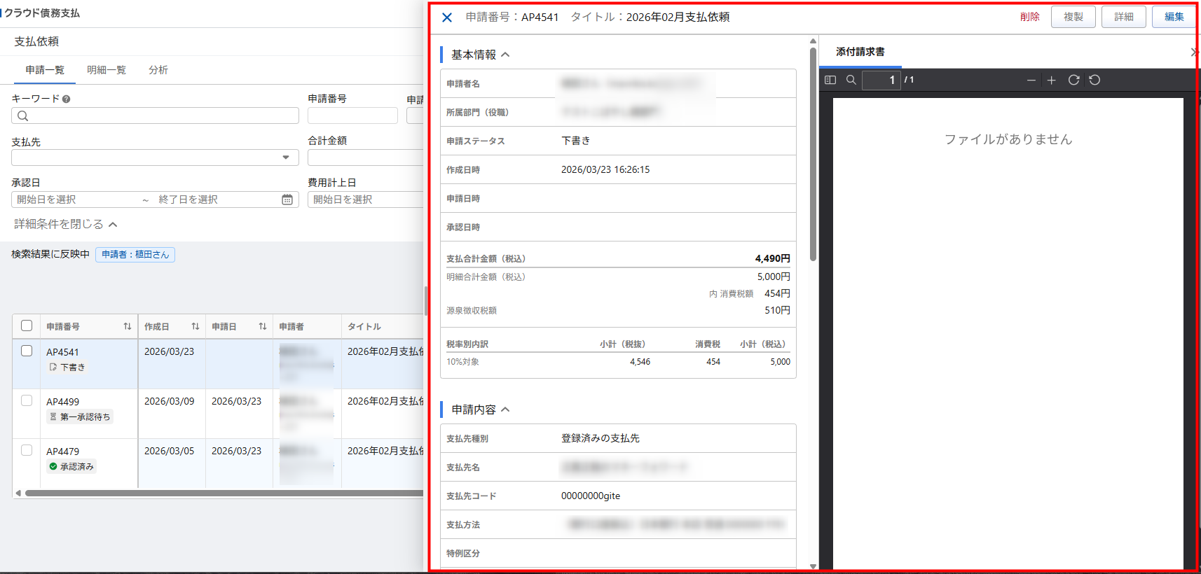 これにより、画面を切り替える手間がなくなり、作成した申請内容をスムーズに確認することが可能です。