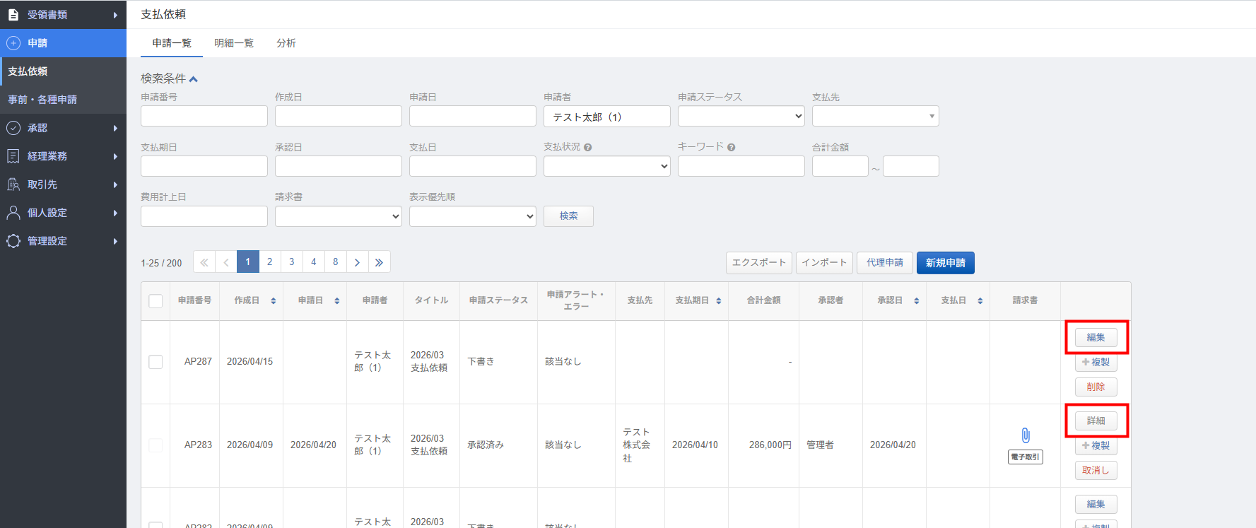 申請業務をより簡単かつスムーズに行えるよう、「支払依頼」>「申請一覧」画面のデザインと操作性を改善します。