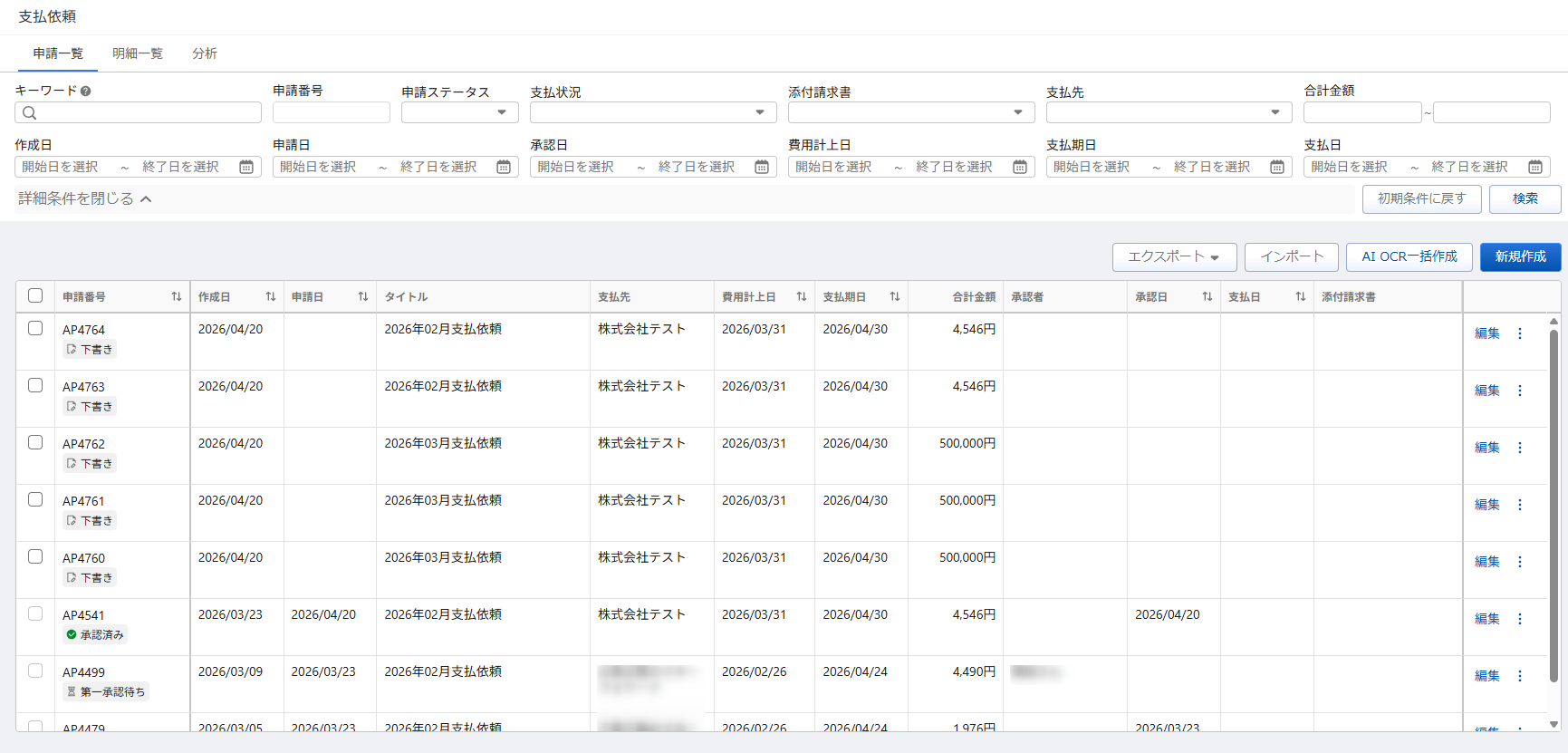 このたび、「支払依頼」>「申請一覧」画面のデザインを刷新し、より見やすく使いやすい画面へリニューアルすることになりましたので、お知らせいたします。
