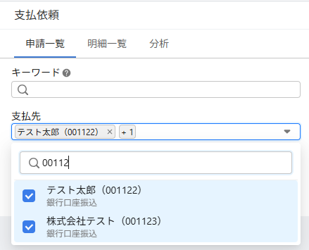 また、複数の支払先を選択し、まとめて検索することも可能です。