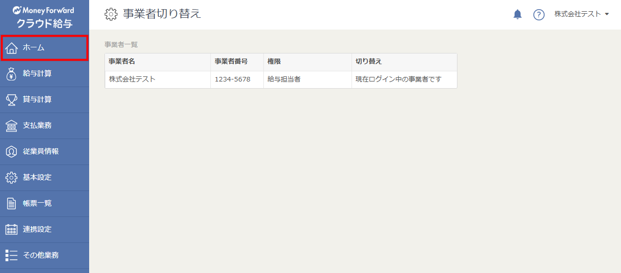 3. 給与担当者用画面に切り替わったことを確認します。