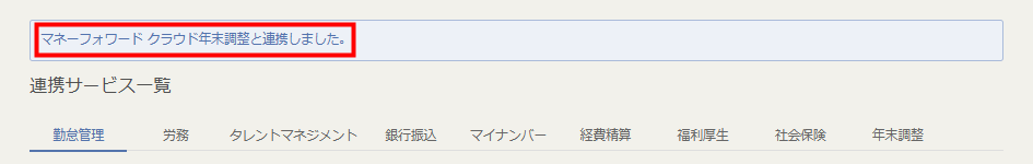 - 「マネーフォワード クラウド年末調整と連携しました。」というメッセージが表示されたことを確認します。