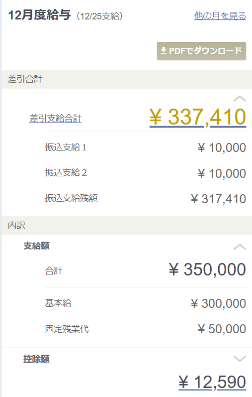 明細の金額をクリックすると、支給額や控除額の内訳の確認を確認できます。
