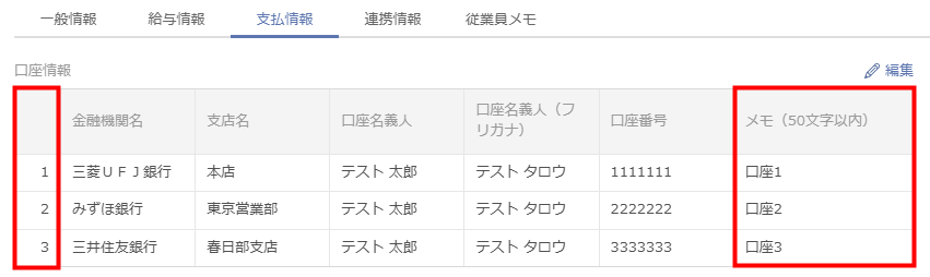 本リリース後は、より自由な用途でご利用いただけるよう、口座情報の「口座名」項目を削除し「メモ」項目を追加いたします。また、登録されている各口座に番号を追加いたします。