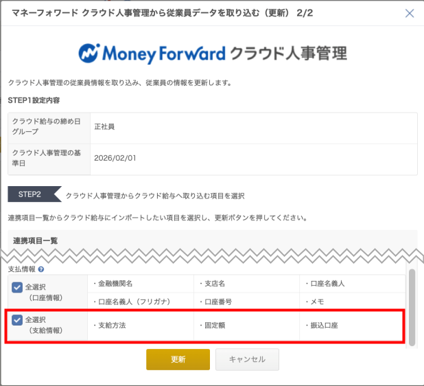 クラウド人事管理からの「支給情報」カテゴリーの連携