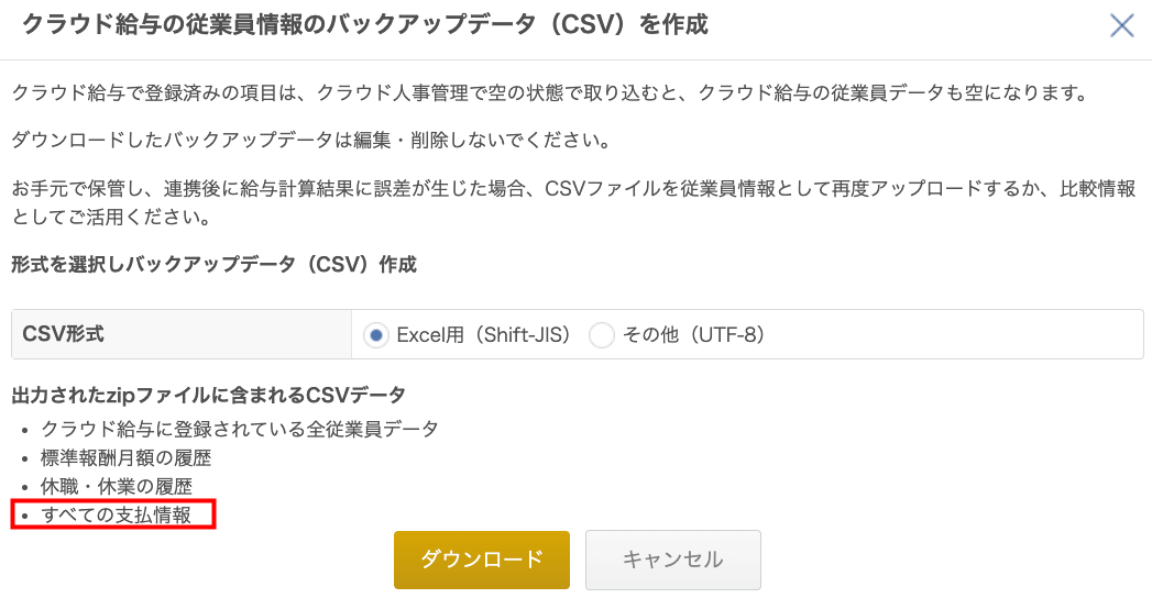 クラウド人事管理へのデータ移行をスムーズに行うために、「支払情報」のデータ移行専用CSVの出力に対応します。