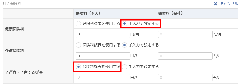 健康保険料「手入力で設定」かつ子ども・子育て支援金「保険料額表を使用する」の設定について ※2026年3月26日追記