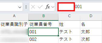 これにより、CSVファイルで従業員番号に関数を設定するなどの操作が容易になります。