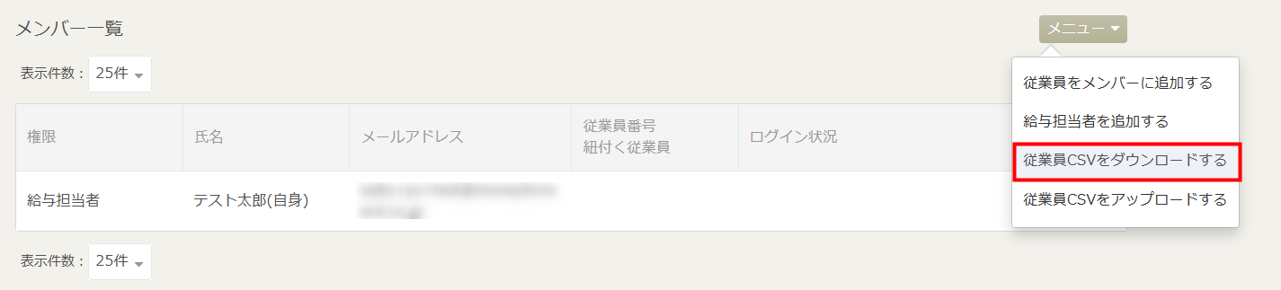 「メンバーの追加・管理」画面で出力できるCSVファイルにおいて、「従業員番号」列に設定されているタブ文字を削除します。