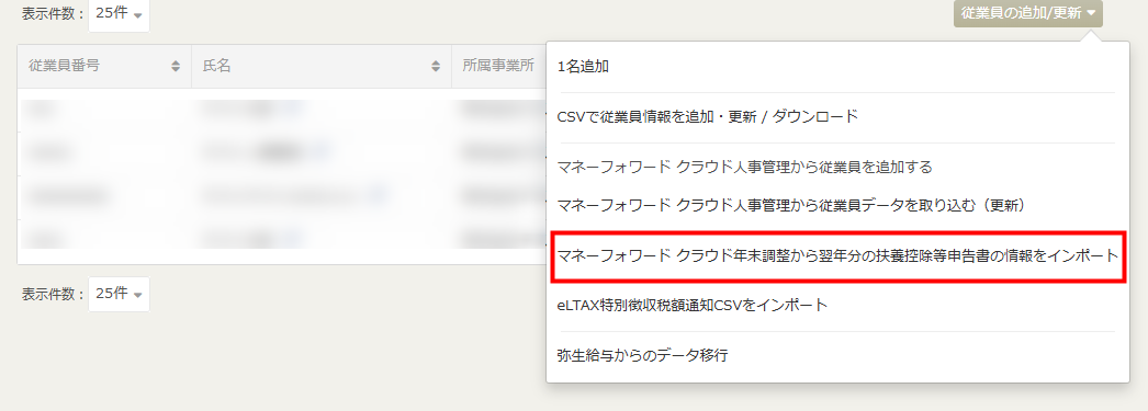 翌年の扶養控除等申告書の情報は、マネーフォワード クラウド給与の「従業員情報」画面で「マネーフォワード クラウド年末調整から翌年分の扶養控除等申告書の情報をインポート」の操作を行うことでインポートできます。