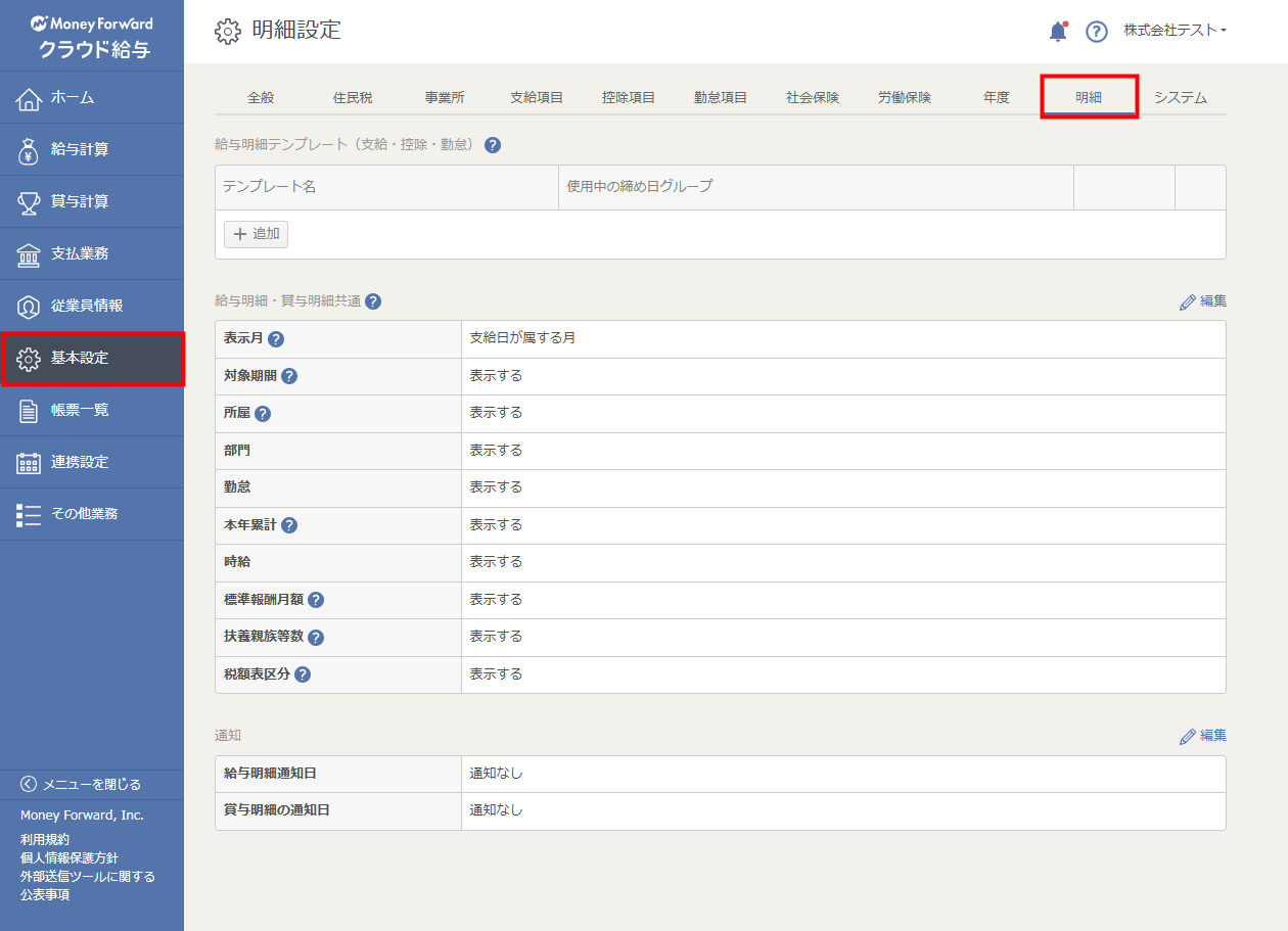 - 「給与明細・賞与明細共通」および「通知設定」で設定できる内容に変更はありません。