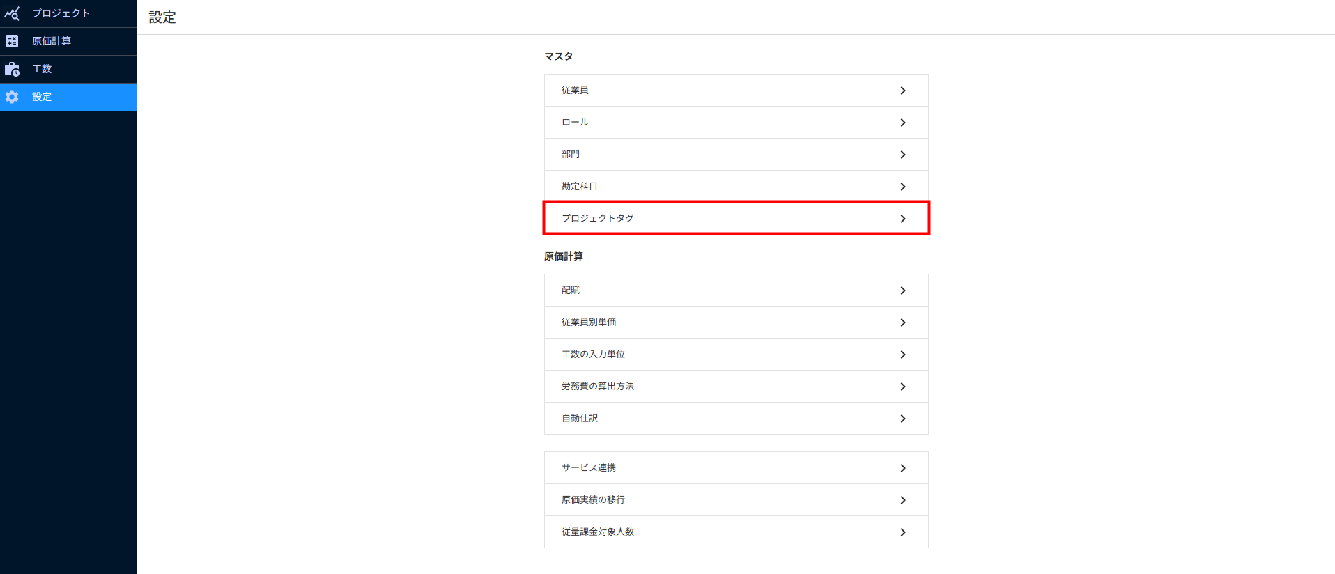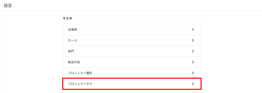 「プロジェクトタグ」画面の名称を「プロジェクト種別」画面に変更します。