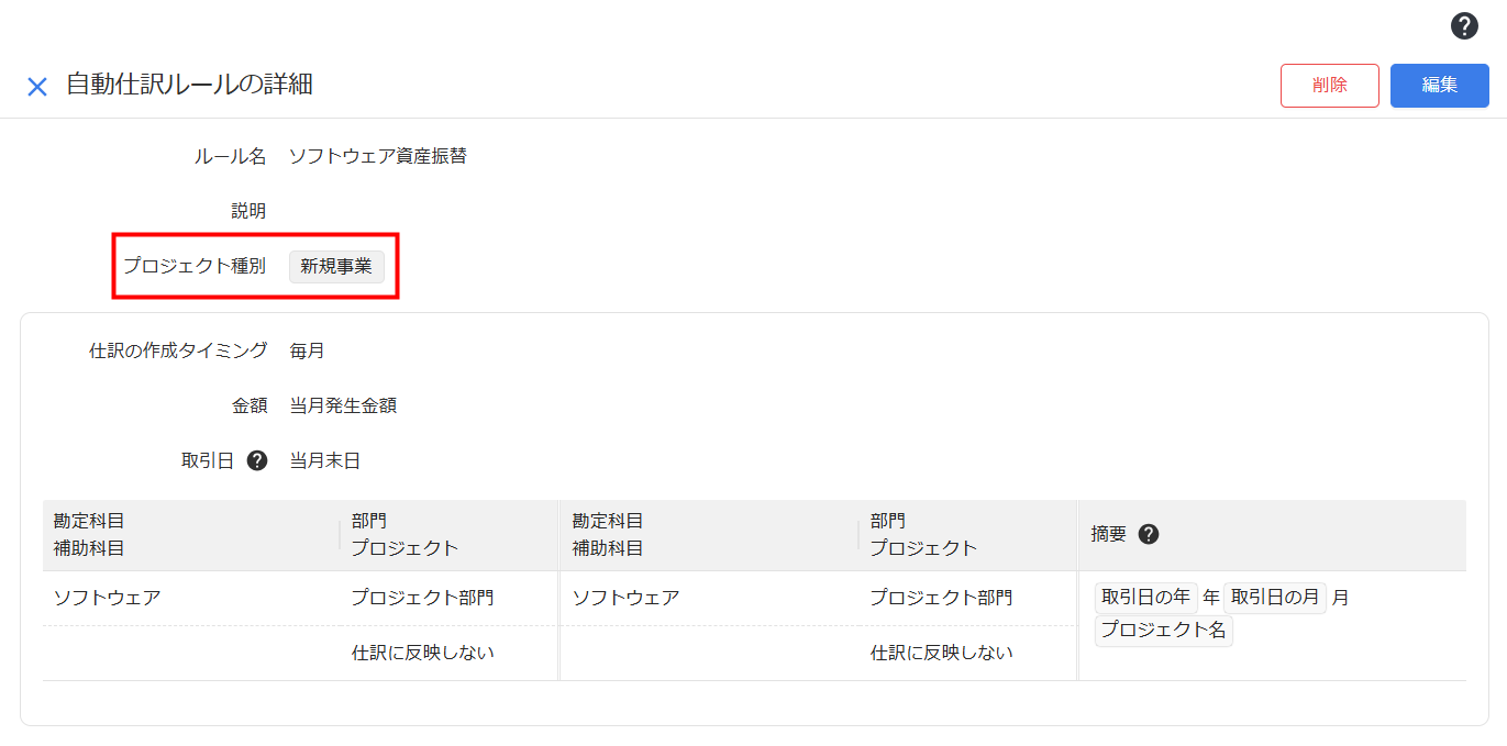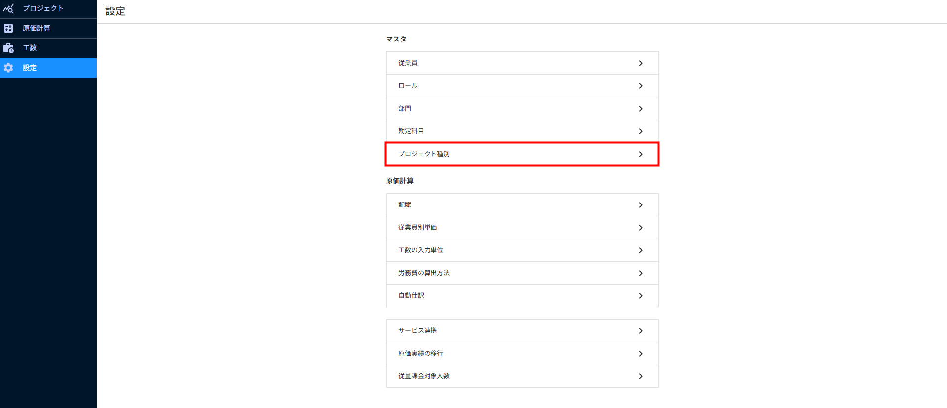 これに伴い、「プロジェクト」画面・「原価計算」画面・「自動仕訳ルール」画面に表示される名称も、「プロジェクトタグ」から「プロジェクト種別」に変更されます。