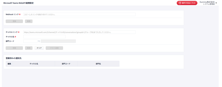 - 「Microsoft Teams WebAPI連携設定」画面が表示されたことを確認します。