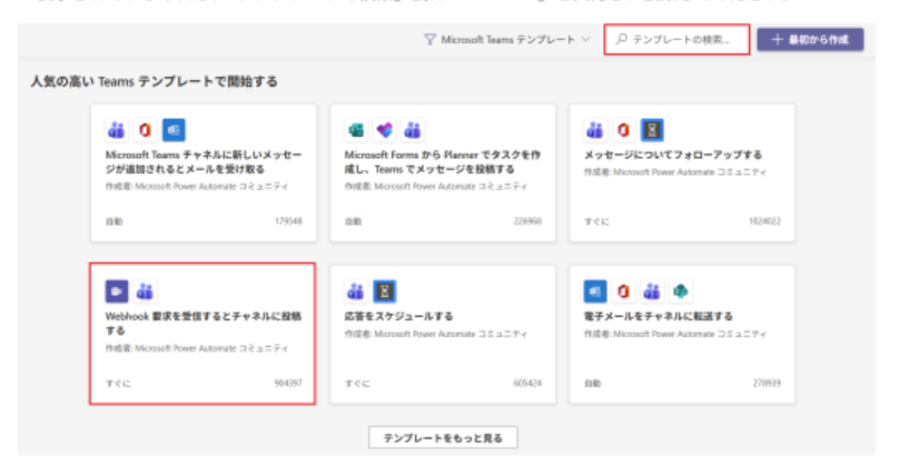 - 候補の一覧から「Webhook 要求を受信するとチャネルに投稿する」を選択します。