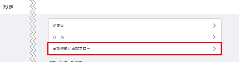 1. 設定」画面で「承認機能と承認フロー」をクリックします。