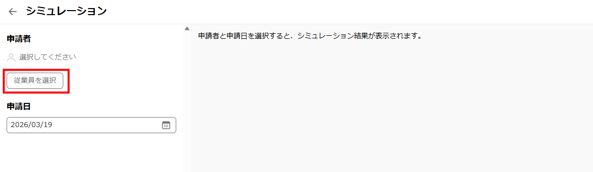- 「シミュレーション」画面で「従業員を選択」をクリックします。