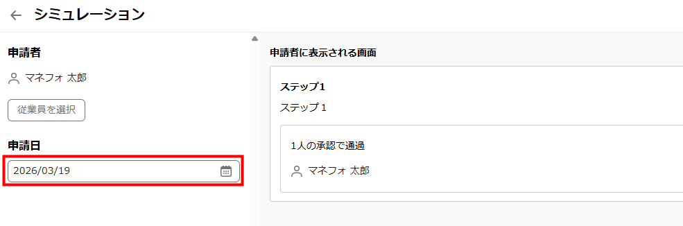 - 「申請日」で申請者が申請を提出する日付を指定します。
