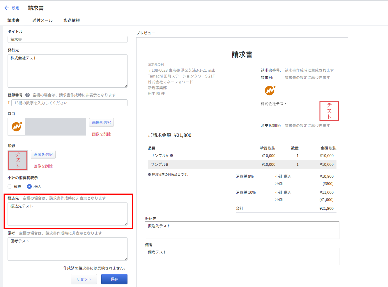 「設定」>「請求書」画面の詳細は以下のガイドをご参照ください。