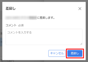 - 「差戻し」画面で差し戻しの理由を入力し、「差戻し」をクリックします。