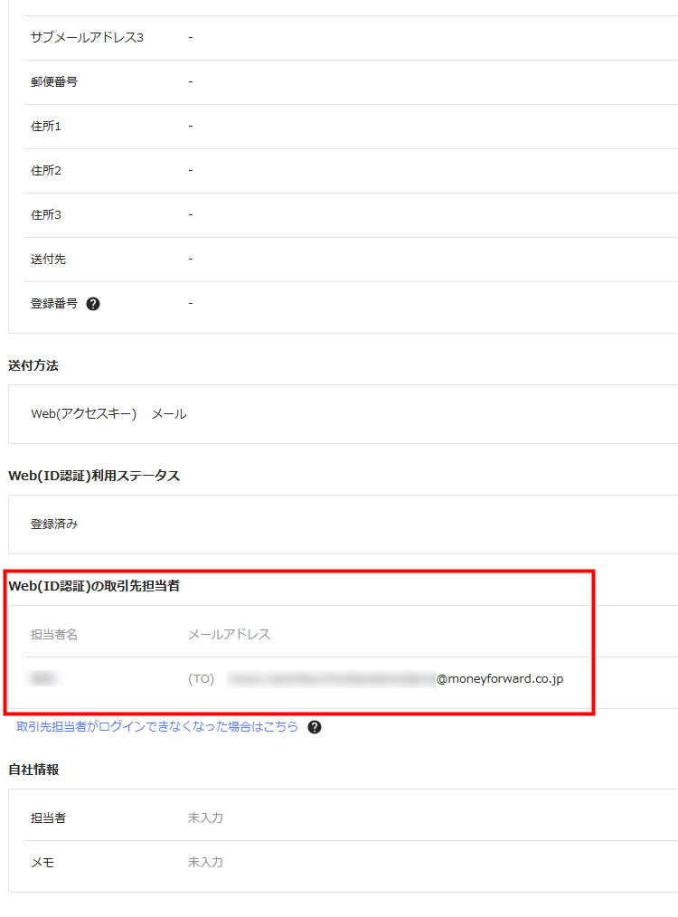「Web(ID認証)の取引先担当者」のメールアドレスを変更する場合は、取引先による操作が必要です。
