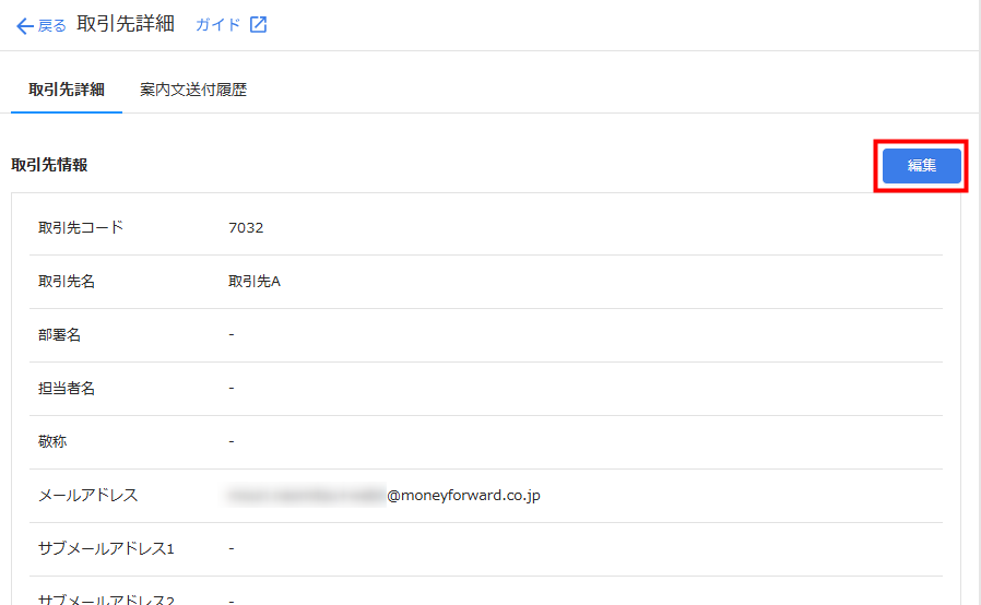 - 「取引先詳細」画面右上の「編集」をクリックします。