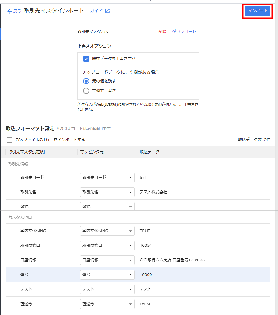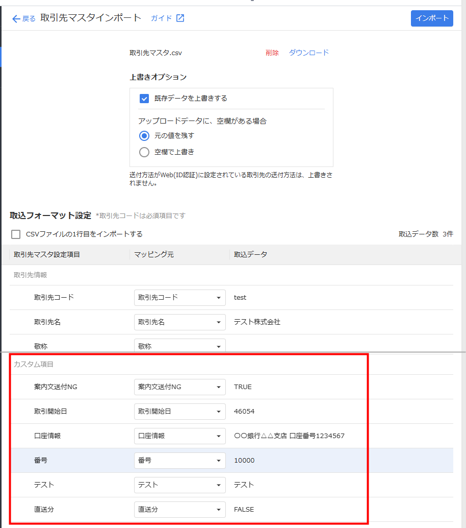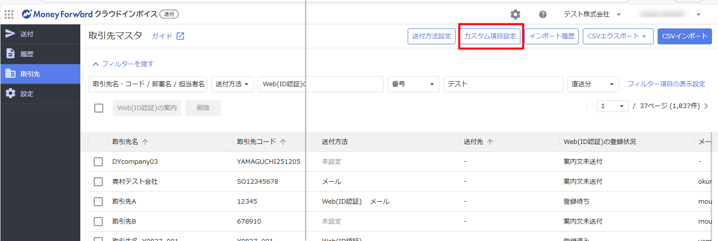 マネーフォワード クラウドインボイス [送付]では、APIを利用してカスタム項目を含む取引先マスタをインポートできます。