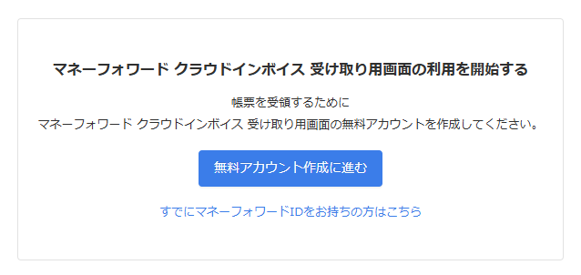 マネーフォワード クラウドインボイス 受け取り用画面に招待されたお客さま